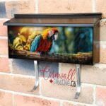 Applying your A Beautiful Colorful Parrot Perched On A Tree Branch wall-mounted townhouse / ranch mailbox cover it is pretty easy to transform your mailbox to a special and unique item. These covers require a flat surface, so they work with townhouse / ranch mailboxes that do not have any embossed / debossed decoration or signs. Magnetic mailbox covers work with steel boxes only, for aluminum and plastic boxes we offer the self-adhesive vinyl covers. Also, you can create your custom townhouse / ranch mailbox cover using you own pictures, adding your name, street number, etc. Our magnetic covers feature a complete magnetic surface throughout the entire design, unlike lower-quality options that only incorporate two magnet strips combined with a piece of canvas. This ensures better functionality and a more reliable, stronger hold against the wind, also these covers have an additional UV protection, so your covers will not fade for many years. The reflective mailbox covers function just like license plates and road signs, ensuring excellent visibility during nighttime.