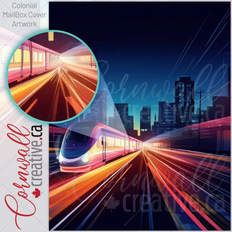 Applying your A High Speed Ultramodern Train Rides On Rails wall-mounted townhouse / ranch mailbox cover it is pretty easy to develop your mailbox to a special and unique item. These covers require a flat surface, so they work with townhouse / ranch mailboxes that do not have any embossed / debossed decoration or signs. Magnetic mailbox covers work with steel boxes only, for aluminum and plastic boxes we offer the self-adhesive vinyl covers. Also, you can create your custom townhouse / ranch mailbox cover using you own pictures, adding your name, street number, etc. Our magnetic covers feature a complete magnetic surface throughout the entire design, unlike lower-quality options that only incorporate two magnet strips combined with a piece of canvas. This ensures better functionality and a more reliable, stronger hold against the wind, also these covers have an additional UV protection, so your covers will not fade for many years. The reflective mailbox covers function just like license plates and road signs, ensuring excellent visibility during nighttime.