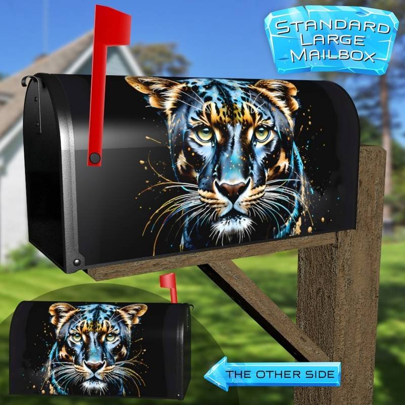 Improve your Mailbox and your neighborhood with this brilliant Abstract Black Panther Portrait 2 curbside / rural / farm magnetic or self adhesive vinyl Mailbox Cover. Our magnetic covers feature a complete magnetic surface throughout the entire design, unlike lower-quality options that only incorporate two magnet strips combined with a piece of canvas. This ensures better functionality and a more reliable, stronger hold against the wind, also these covers have an additional UV protection, so your covers will not fade for many years. We offer self-adhesive and magnetic covers with both standard opaque vinyl or reflective vinyl options. The reflective mailbox covers function just like license plates and road signs, ensuring excellent visibility during nighttime. No matter the size of your mailbox, we make covers for all small, large and jumbo boxes to suit your needs perfectly!