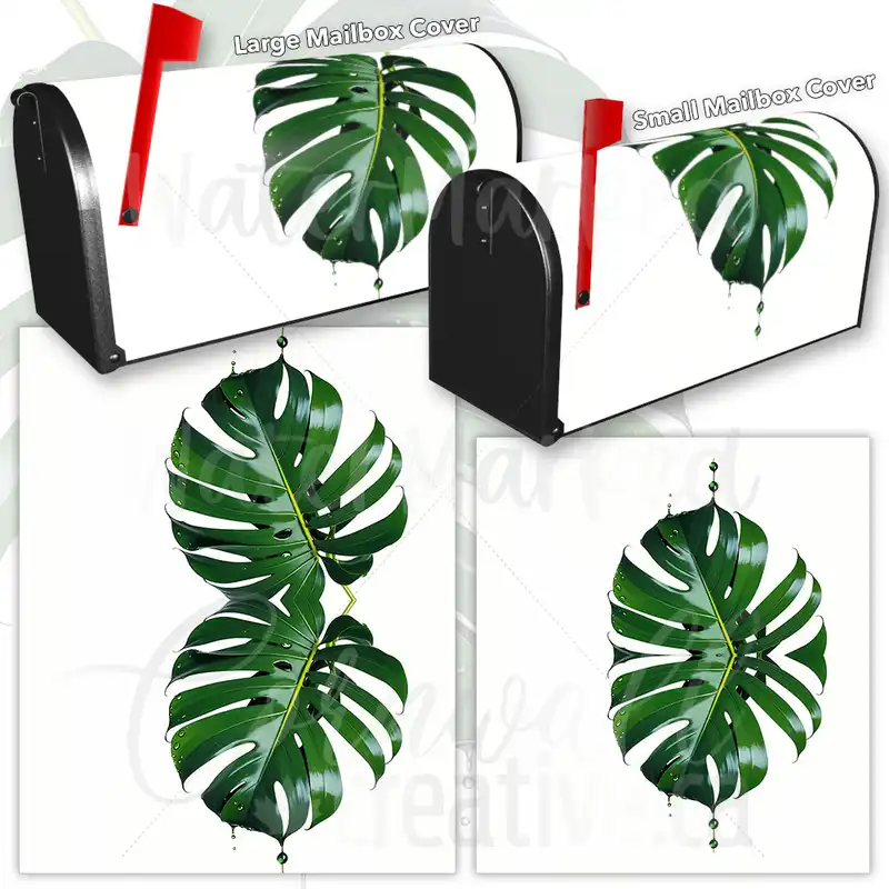 Reform your Mailbox and your neighborhood with this brilliant Abstract Monstera Leaf curbside / rural / farm magnetic or self adhesive vinyl Mailbox Cover. Our magnetic covers feature a complete magnetic surface throughout the entire design, unlike lower-quality options that only incorporate two magnet strips combined with a piece of canvas. This ensures better functionality and a more reliable, stronger hold against the wind, also these covers have an additional UV protection, so your covers will not fade for many years. We offer self-adhesive and magnetic covers with both standard opaque vinyl or reflective vinyl options. The reflective mailbox covers function just like license plates and road signs, ensuring excellent visibility during nighttime. No matter the size of your mailbox, we make covers for all small, large and jumbo boxes to suit your needs perfectly!