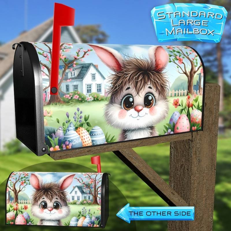 Reform your Mailbox and your neighborhood with this brilliant Adorable Easter Bunny 2 curbside / rural / farm magnetic or self adhesive vinyl Mailbox Cover. Our magnetic covers feature a complete magnetic surface throughout the entire design, unlike lower-quality options that only incorporate two magnet strips combined with a piece of canvas. This ensures better functionality and a more reliable, stronger hold against the wind, also these covers have an additional UV protection, so your covers will not fade for many years. We offer self-adhesive and magnetic covers with both standard opaque vinyl or reflective vinyl options. The reflective mailbox covers function just like license plates and road signs, ensuring excellent visibility during nighttime. No matter the size of your mailbox, we make covers for all small, large and jumbo boxes to suit your needs perfectly!