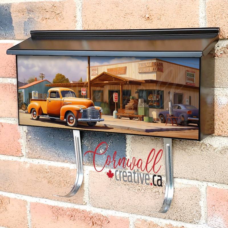 Applying your American Old Orange Vintage Retro Truck on the Street wall-mounted townhouse / ranch mailbox cover it is pretty easy to prettify your mailbox to a special and unique item. These covers require a flat surface, so they work with townhouse / ranch mailboxes that do not have any embossed / debossed decoration or signs. Magnetic mailbox covers work with steel boxes only, for aluminum and plastic boxes we offer the self-adhesive vinyl covers. Also, you can create your custom townhouse / ranch mailbox cover using you own pictures, adding your name, street number, etc. Our magnetic covers feature a complete magnetic surface throughout the entire design, unlike lower-quality options that only incorporate two magnet strips combined with a piece of canvas. This ensures better functionality and a more reliable, stronger hold against the wind, also these covers have an additional UV protection, so your covers will not fade for many years. The reflective mailbox covers function just like license plates and road signs, ensuring excellent visibility during nighttime.
