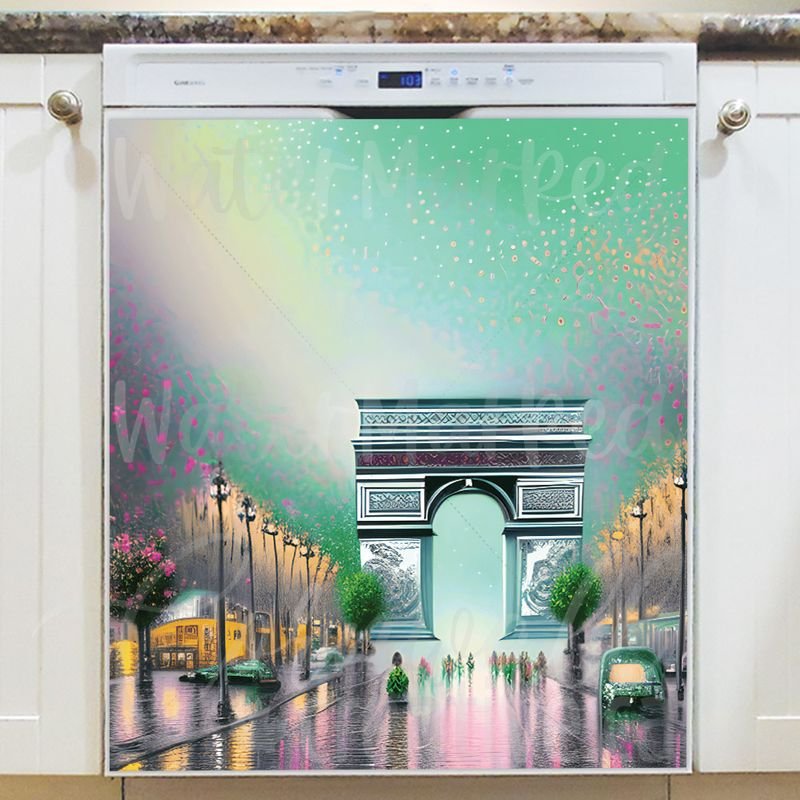 Gild your kitchen effortlessly with this stunning Arc de Triomphe Magnetic Dishwasher Door Cover! Keep in mind that while this cover works with most dishwashers, some stainless steel and plastic doors might not hold magnets. There are two types of stainless steel: one that attracts magnets well and another that does not, and plastic doors will definitely not work with magnets. So, it is a good idea to test the surface with a magnet before making a purchase. If your dishwasher door is not compatible, consider opting for the Removable Dishwasher Door Sticker instead. Your transformed kitchen will be ready for the season in no time! Keep in mind that this magnetic cover is versatile and can be used on a variety of appliances, including fridges, freezers, washers, dryers, and more!