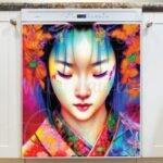 Beautiful Asian Girl Magnetic Dishwasher Door Cover