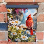 Adorn your Mailbox and your neighborhood with this brilliant Beautiful Cardinal and Daisies Colonial magnetic or self adhesive vinyl Mailbox Cover. Our magnetic covers feature a complete magnetic surface throughout the entire design, unlike lower-quality options that only incorporate two magnet strips combined with a piece of canvas. This ensures better functionality and a more reliable, stronger hold against the wind, also these covers have an additional UV protection, so your covers will not fade for many years. We offer self-adhesive and magnetic covers with both standard opaque vinyl or reflective vinyl options. The reflective mailbox covers function just like license plates and road signs, ensuring excellent visibility during nighttime. No matter the size of your mailbox, we make covers for all box sizes to suit your needs perfectly!