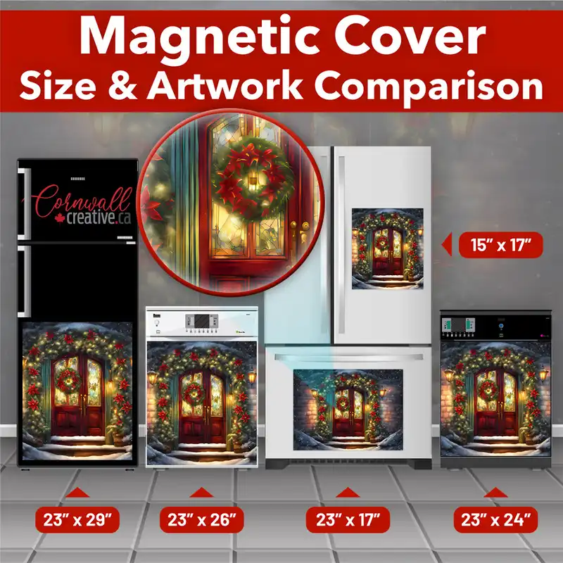 Reform your kitchen effortlessly with this stunning Beautiful Christmas Cottage Door Magnetic Dishwasher Door Cover! Keep in mind that while this cover works with most dishwashers, some stainless steel and plastic doors might not hold magnets. There are two types of stainless steel: one that attracts magnets well and another that does not, and plastic doors will definitely not work with magnets. So, it is a good idea to test the surface with a magnet before making a purchase. If your dishwasher door is not compatible, consider opting for the Removable Dishwasher Door Sticker instead. Your gussied up kitchen will be ready for the season in no time! Keep in mind that this magnetic cover is versatile and can be used on a variety of appliances, including fridges, freezers, washers, dryers, and more!