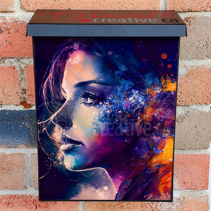 Beautify your Mailbox and your neighborhood with this brilliant Beautiful Colorful Fantasy Abstract Portrait Of A Beautiful Woman Colonial magnetic or self adhesive vinyl Mailbox Cover. Our magnetic covers feature a complete magnetic surface throughout the entire design, unlike lower-quality options that only incorporate two magnet strips combined with a piece of canvas. This ensures better functionality and a more reliable, stronger hold against the wind, also these covers have an additional UV protection, so your covers will not fade for many years. We offer self-adhesive and magnetic covers with both standard opaque vinyl or reflective vinyl options. The reflective mailbox covers function just like license plates and road signs, ensuring excellent visibility during nighttime. No matter the size of your mailbox, we make covers for all box sizes to suit your needs perfectly!