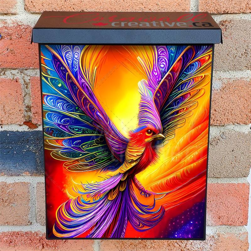 Spruce up your Mailbox and your neighborhood with this brilliant Beautiful Fantasy Bird Colonial magnetic or self adhesive vinyl Mailbox Cover. Our magnetic covers feature a complete magnetic surface throughout the entire design, unlike lower-quality options that only incorporate two magnet strips combined with a piece of canvas. This ensures better functionality and a more reliable, stronger hold against the wind, also these covers have an additional UV protection, so your covers will not fade for many years. We offer self-adhesive and magnetic covers with both standard opaque vinyl or reflective vinyl options. The reflective mailbox covers function just like license plates and road signs, ensuring excellent visibility during nighttime. No matter the size of your mailbox, we make covers for all box sizes to suit your needs perfectly!