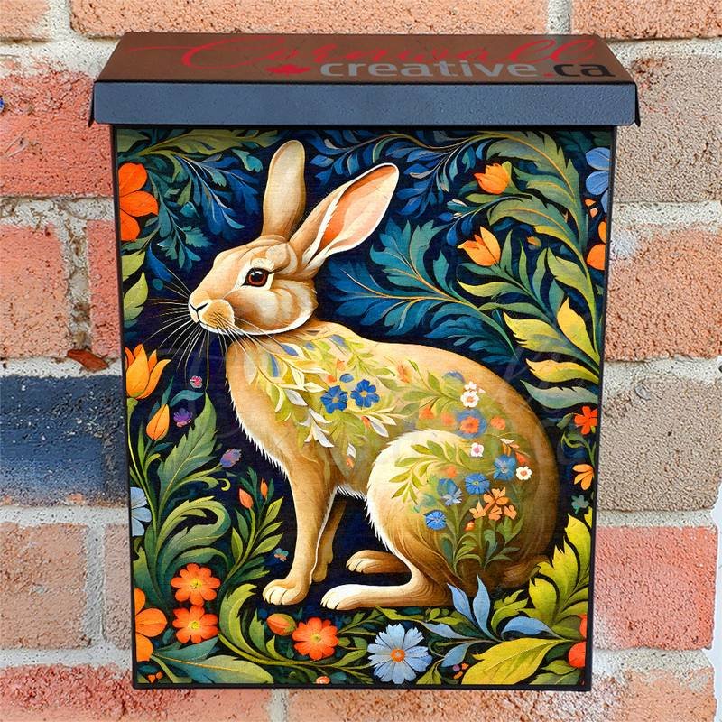 Reform your Mailbox and your neighborhood with this brilliant Beautiful Folklore Hare Colonial magnetic or self adhesive vinyl Mailbox Cover. Our magnetic covers feature a complete magnetic surface throughout the entire design, unlike lower-quality options that only incorporate two magnet strips combined with a piece of canvas. This ensures better functionality and a more reliable, stronger hold against the wind, also these covers have an additional UV protection, so your covers will not fade for many years. We offer self-adhesive and magnetic covers with both standard opaque vinyl or reflective vinyl options. The reflective mailbox covers function just like license plates and road signs, ensuring excellent visibility during nighttime. No matter the size of your mailbox, we make covers for all box sizes to suit your needs perfectly!