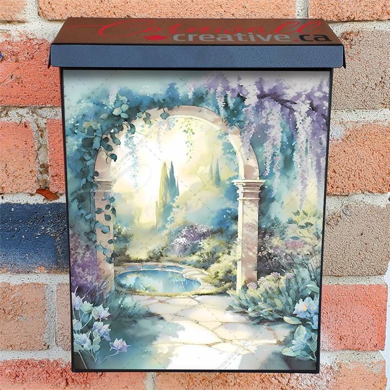 Develop your Mailbox and your neighborhood with this brilliant Beautiful Garden Gate Colonial magnetic or self adhesive vinyl Mailbox Cover. Our magnetic covers feature a complete magnetic surface throughout the entire design, unlike lower-quality options that only incorporate two magnet strips combined with a piece of canvas. This ensures better functionality and a more reliable, stronger hold against the wind, also these covers have an additional UV protection, so your covers will not fade for many years. We offer self-adhesive and magnetic covers with both standard opaque vinyl or reflective vinyl options. The reflective mailbox covers function just like license plates and road signs, ensuring excellent visibility during nighttime. No matter the size of your mailbox, we make covers for all box sizes to suit your needs perfectly!