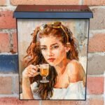 Revamp your Mailbox and your neighborhood with this brilliant Beautiful Girl Drinking Coffee Colonial magnetic or self adhesive vinyl Mailbox Cover. Our magnetic covers feature a complete magnetic surface throughout the entire design, unlike lower-quality options that only incorporate two magnet strips combined with a piece of canvas. This ensures better functionality and a more reliable, stronger hold against the wind, also these covers have an additional UV protection, so your covers will not fade for many years. We offer self-adhesive and magnetic covers with both standard opaque vinyl or reflective vinyl options. The reflective mailbox covers function just like license plates and road signs, ensuring excellent visibility during nighttime. No matter the size of your mailbox, we make covers for all box sizes to suit your needs perfectly!