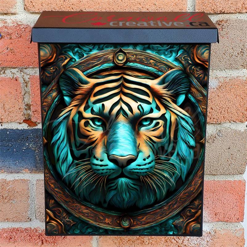 Adorn your Mailbox and your neighborhood with this brilliant Beautiful Ornamental Tiger Colonial magnetic or self adhesive vinyl Mailbox Cover. Our magnetic covers feature a complete magnetic surface throughout the entire design, unlike lower-quality options that only incorporate two magnet strips combined with a piece of canvas. This ensures better functionality and a more reliable, stronger hold against the wind, also these covers have an additional UV protection, so your covers will not fade for many years. We offer self-adhesive and magnetic covers with both standard opaque vinyl or reflective vinyl options. The reflective mailbox covers function just like license plates and road signs, ensuring excellent visibility during nighttime. No matter the size of your mailbox, we make covers for all box sizes to suit your needs perfectly!