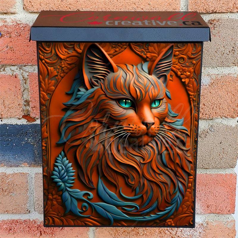 Decorate your Mailbox and your neighborhood with this brilliant Beautiful Tooled Leather Cat Colonial magnetic or self adhesive vinyl Mailbox Cover. Our magnetic covers feature a complete magnetic surface throughout the entire design, unlike lower-quality options that only incorporate two magnet strips combined with a piece of canvas. This ensures better functionality and a more reliable, stronger hold against the wind, also these covers have an additional UV protection, so your covers will not fade for many years. We offer self-adhesive and magnetic covers with both standard opaque vinyl or reflective vinyl options. The reflective mailbox covers function just like license plates and road signs, ensuring excellent visibility during nighttime. No matter the size of your mailbox, we make covers for all box sizes to suit your needs perfectly!