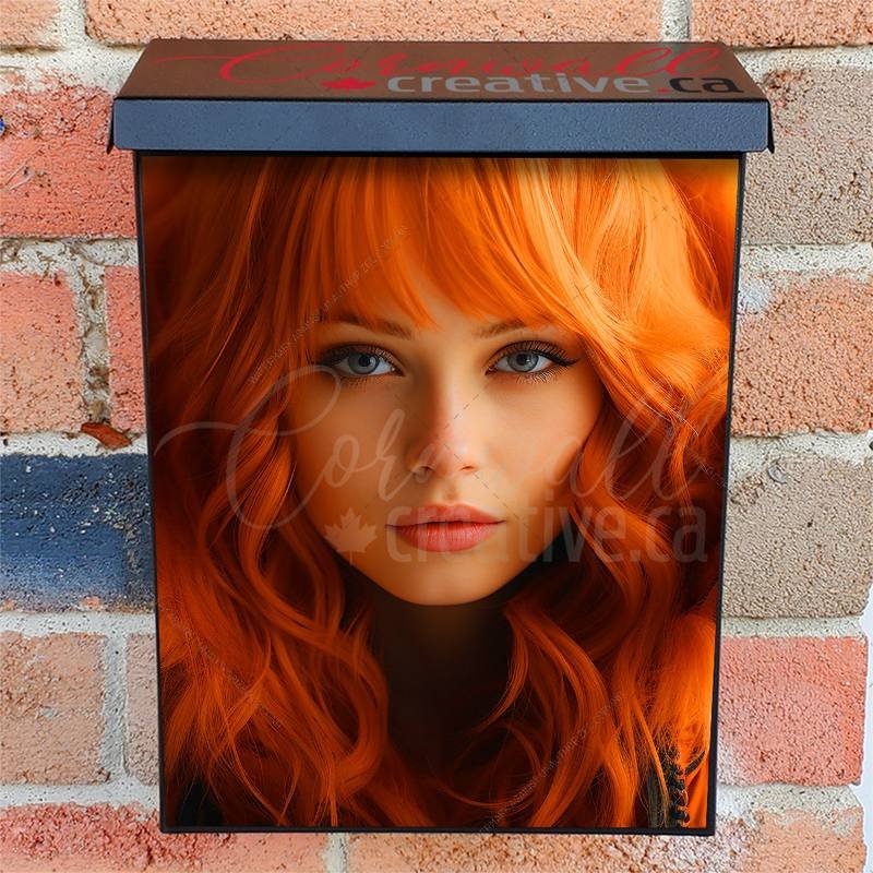 Gussy up your Mailbox and your neighborhood with this brilliant Beautiful Woman Fashion Model With Orange Hair Colonial magnetic or self adhesive vinyl Mailbox Cover. Our magnetic covers feature a complete magnetic surface throughout the entire design, unlike lower-quality options that only incorporate two magnet strips combined with a piece of canvas. This ensures better functionality and a more reliable, stronger hold against the wind, also these covers have an additional UV protection, so your covers will not fade for many years. We offer self-adhesive and magnetic covers with both standard opaque vinyl or reflective vinyl options. The reflective mailbox covers function just like license plates and road signs, ensuring excellent visibility during nighttime. No matter the size of your mailbox, we make covers for all box sizes to suit your needs perfectly!