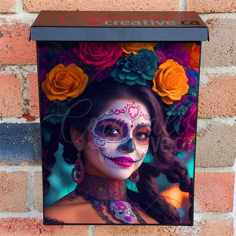 Beautiful Woman With Painted Skull On Her Face Sugar Skull And Roses Colonial Mailbox Cover