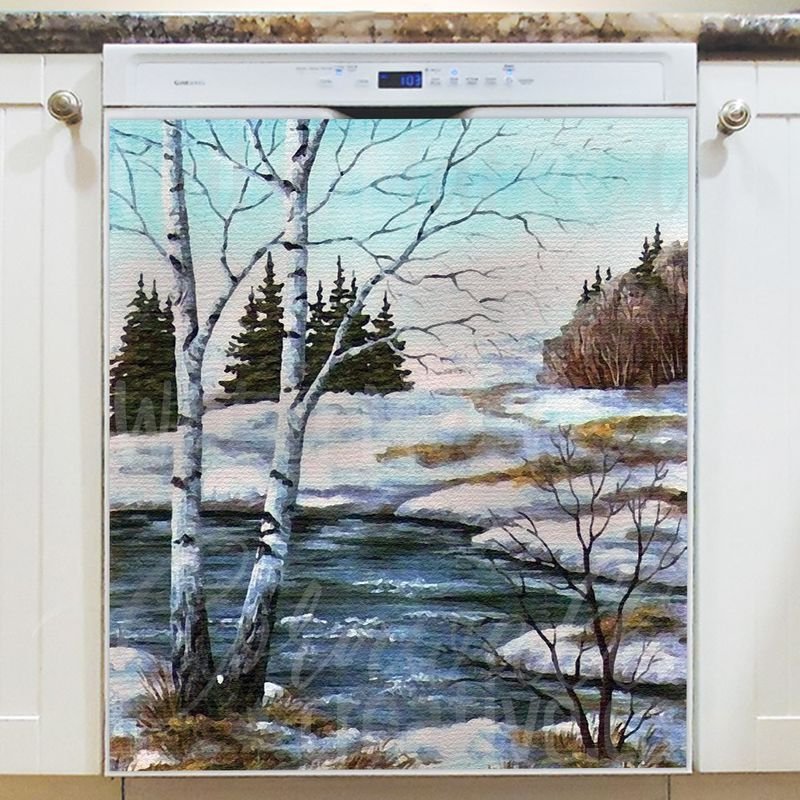 Embellish your kitchen effortlessly with this stunning Birch Trees at the River Magnetic Dishwasher Door Cover! Keep in mind that while this cover works with most dishwashers, some stainless steel and plastic doors might not hold magnets. There are two types of stainless steel: one that attracts magnets well and another that does not, and plastic doors will definitely not work with magnets. So, it is a good idea to test the surface with a magnet before making a purchase. If your dishwasher door is not compatible, consider opting for the Removable Dishwasher Door Sticker instead. Your beautified kitchen will be ready for the season in no time! Keep in mind that this magnetic cover is versatile and can be used on a variety of appliances, including fridges, freezers, washers, dryers, and more!