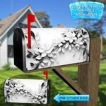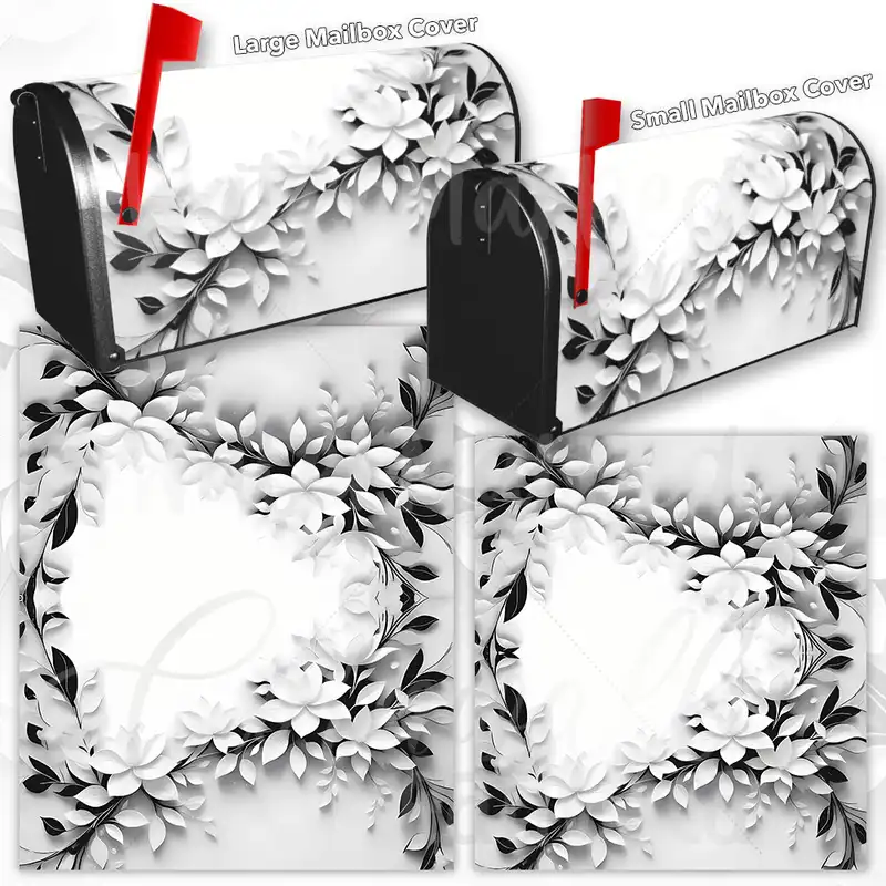 Adorn your Mailbox and your neighborhood with this brilliant Black and White Leaves and Flowers curbside / rural / farm magnetic or self adhesive vinyl Mailbox Cover. Our magnetic covers feature a complete magnetic surface throughout the entire design, unlike lower-quality options that only incorporate two magnet strips combined with a piece of canvas. This ensures better functionality and a more reliable, stronger hold against the wind, also these covers have an additional UV protection, so your covers will not fade for many years. We offer self-adhesive and magnetic covers with both standard opaque vinyl or reflective vinyl options. The reflective mailbox covers function just like license plates and road signs, ensuring excellent visibility during nighttime. No matter the size of your mailbox, we make covers for all small, large and jumbo boxes to suit your needs perfectly!