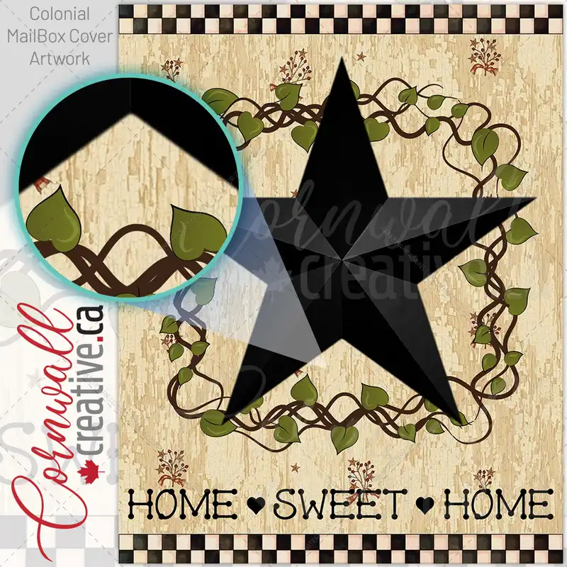 Revamp your Mailbox and your neighborhood with this brilliant Black Prim Barn Star and Wreath Colonial magnetic or self adhesive vinyl Mailbox Cover. Our magnetic covers feature a complete magnetic surface throughout the entire design, unlike lower-quality options that only incorporate two magnet strips combined with a piece of canvas. This ensures better functionality and a more reliable, stronger hold against the wind, also these covers have an additional UV protection, so your covers will not fade for many years. We offer self-adhesive and magnetic covers with both standard opaque vinyl or reflective vinyl options. The reflective mailbox covers function just like license plates and road signs, ensuring excellent visibility during nighttime. No matter the size of your mailbox, we make covers for all box sizes to suit your needs perfectly!
