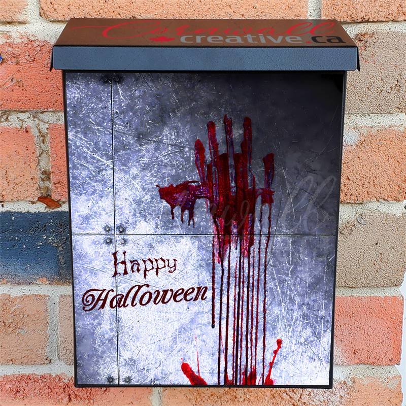 Beautify your Mailbox and your neighborhood with this brilliant Bloody Handprint on the Wall Colonial magnetic or self adhesive vinyl Mailbox Cover. Our magnetic covers feature a complete magnetic surface throughout the entire design, unlike lower-quality options that only incorporate two magnet strips combined with a piece of canvas. This ensures better functionality and a more reliable, stronger hold against the wind, also these covers have an additional UV protection, so your covers will not fade for many years. We offer self-adhesive and magnetic covers with both standard opaque vinyl or reflective vinyl options. The reflective mailbox covers function just like license plates and road signs, ensuring excellent visibility during nighttime. No matter the size of your mailbox, we make covers for all box sizes to suit your needs perfectly!