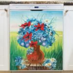Blue Red and White Garden Flowers #2 Magnetic Dishwasher Door Cover