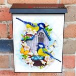 Glamorize your Mailbox and your neighborhood with this brilliant Blue Tit Couple with Birdhouse and Nest Colonial magnetic or self adhesive vinyl Mailbox Cover. Our magnetic covers feature a complete magnetic surface throughout the entire design, unlike lower-quality options that only incorporate two magnet strips combined with a piece of canvas. This ensures better functionality and a more reliable, stronger hold against the wind, also these covers have an additional UV protection, so your covers will not fade for many years. We offer self-adhesive and magnetic covers with both standard opaque vinyl or reflective vinyl options. The reflective mailbox covers function just like license plates and road signs, ensuring excellent visibility during nighttime. No matter the size of your mailbox, we make covers for all box sizes to suit your needs perfectly!