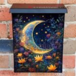 Decorate your Mailbox and your neighborhood with this brilliant Bohemian Moon in the Garden Colonial magnetic or self adhesive vinyl Mailbox Cover. Our magnetic covers feature a complete magnetic surface throughout the entire design, unlike lower-quality options that only incorporate two magnet strips combined with a piece of canvas. This ensures better functionality and a more reliable, stronger hold against the wind, also these covers have an additional UV protection, so your covers will not fade for many years. We offer self-adhesive and magnetic covers with both standard opaque vinyl or reflective vinyl options. The reflective mailbox covers function just like license plates and road signs, ensuring excellent visibility during nighttime. No matter the size of your mailbox, we make covers for all box sizes to suit your needs perfectly!