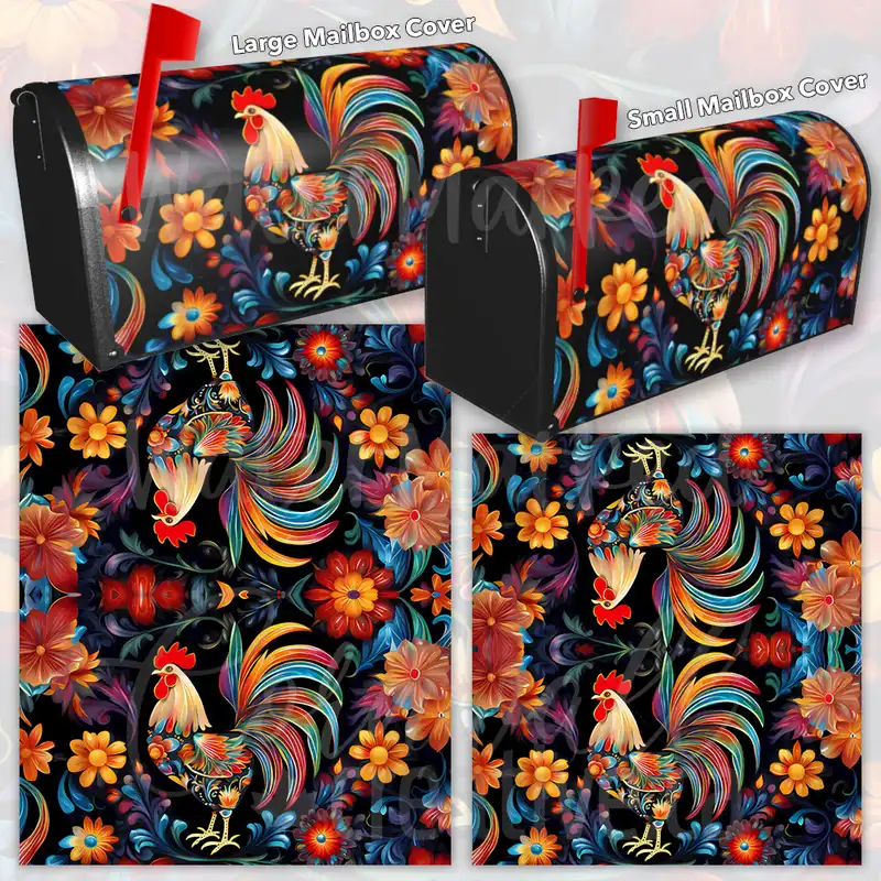 Revamp your Mailbox and your neighborhood with this brilliant Boho Farmhouse Rooster curbside / rural / farm magnetic or self adhesive vinyl Mailbox Cover. Our magnetic covers feature a complete magnetic surface throughout the entire design, unlike lower-quality options that only incorporate two magnet strips combined with a piece of canvas. This ensures better functionality and a more reliable, stronger hold against the wind, also these covers have an additional UV protection, so your covers will not fade for many years. We offer self-adhesive and magnetic covers with both standard opaque vinyl or reflective vinyl options. The reflective mailbox covers function just like license plates and road signs, ensuring excellent visibility during nighttime. No matter the size of your mailbox, we make covers for all small, large and jumbo boxes to suit your needs perfectly!