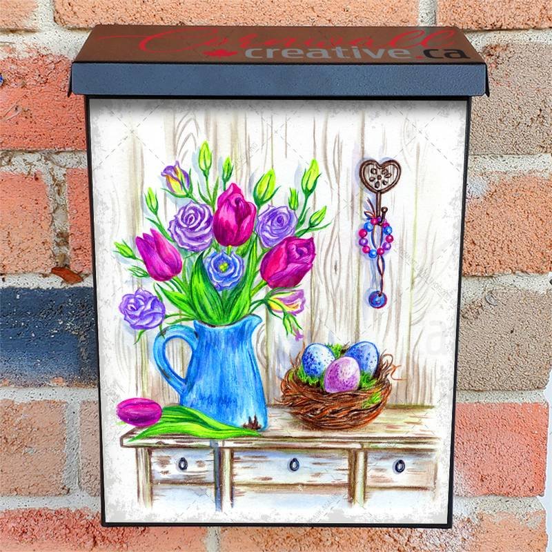 Develop your Mailbox and your neighborhood with this brilliant Bouquet on the Table #2 Colonial magnetic or self adhesive vinyl Mailbox Cover. Our magnetic covers feature a complete magnetic surface throughout the entire design, unlike lower-quality options that only incorporate two magnet strips combined with a piece of canvas. This ensures better functionality and a more reliable, stronger hold against the wind, also these covers have an additional UV protection, so your covers will not fade for many years. We offer self-adhesive and magnetic covers with both standard opaque vinyl or reflective vinyl options. The reflective mailbox covers function just like license plates and road signs, ensuring excellent visibility during nighttime. No matter the size of your mailbox, we make covers for all box sizes to suit your needs perfectly!