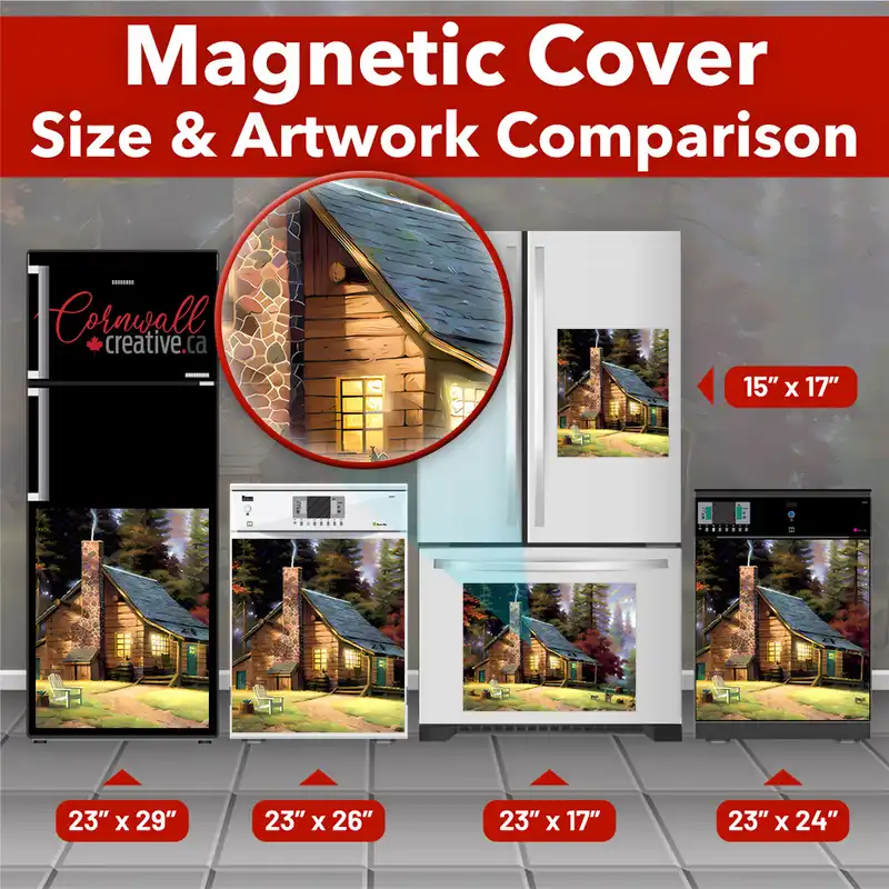 Lift your kitchen effortlessly with this stunning Cabin by the Woods Magnetic Dishwasher Door Cover! Keep in mind that while this cover works with most dishwashers, some stainless steel and plastic doors might not hold magnets. There are two types of stainless steel: one that attracts magnets well and another that does not, and plastic doors will definitely not work with magnets. So, it is a good idea to test the surface with a magnet before making a purchase. If your dishwasher door is not compatible, consider opting for the Removable Dishwasher Door Sticker instead. Your adorned kitchen will be ready for the season in no time! Keep in mind that this magnetic cover is versatile and can be used on a variety of appliances, including fridges, freezers, washers, dryers, and more!