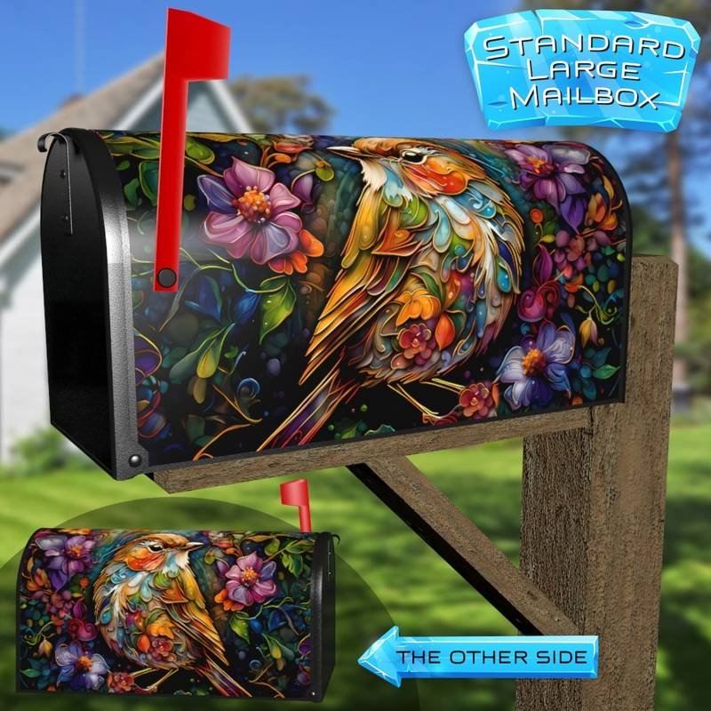 Improve your Mailbox and your neighborhood with this brilliant Colorful Abstract Robin curbside / rural / farm magnetic or self adhesive vinyl Mailbox Cover. Our magnetic covers feature a complete magnetic surface throughout the entire design, unlike lower-quality options that only incorporate two magnet strips combined with a piece of canvas. This ensures better functionality and a more reliable, stronger hold against the wind, also these covers have an additional UV protection, so your covers will not fade for many years. We offer self-adhesive and magnetic covers with both standard opaque vinyl or reflective vinyl options. The reflective mailbox covers function just like license plates and road signs, ensuring excellent visibility during nighttime. No matter the size of your mailbox, we make covers for all small, large and jumbo boxes to suit your needs perfectly!