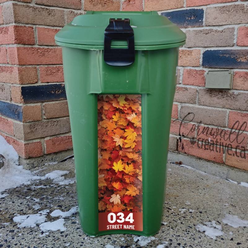 Personalize your green bin (for organics collection) by decorating it with a “colorful autumn leaves create a vibrant carpet on the ground” customized sticker, adding your address! This simple step makes it easy to identify your bin, especially on windy days when everything gets blown around. Unleash your creativity, think vibrant colors, fun designs, or even stickers that reflect your personality! By personalizing your bin, you’re not just making it visually appealing; you’re helping your neighbors know which bin is yours during collection day.