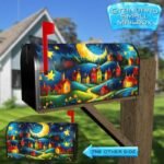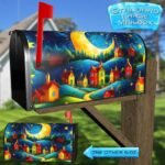 Enhance your Mailbox and your neighborhood with this brilliant Colorful European Town at Night curbside / rural / farm magnetic or self adhesive vinyl Mailbox Cover. Our magnetic covers feature a complete magnetic surface throughout the entire design, unlike lower-quality options that only incorporate two magnet strips combined with a piece of canvas. This ensures better functionality and a more reliable, stronger hold against the wind, also these covers have an additional UV protection, so your covers will not fade for many years. We offer self-adhesive and magnetic covers with both standard opaque vinyl or reflective vinyl options. The reflective mailbox covers function just like license plates and road signs, ensuring excellent visibility during nighttime. No matter the size of your mailbox, we make covers for all small, large and jumbo boxes to suit your needs perfectly!