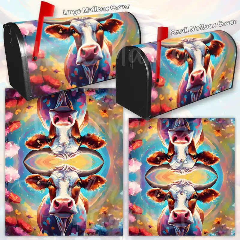 Beautify your Mailbox and your neighborhood with this brilliant Colorful Farmhouse Cow Portrait curbside / rural / farm magnetic or self adhesive vinyl Mailbox Cover. Our magnetic covers feature a complete magnetic surface throughout the entire design, unlike lower-quality options that only incorporate two magnet strips combined with a piece of canvas. This ensures better functionality and a more reliable, stronger hold against the wind, also these covers have an additional UV protection, so your covers will not fade for many years. We offer self-adhesive and magnetic covers with both standard opaque vinyl or reflective vinyl options. The reflective mailbox covers function just like license plates and road signs, ensuring excellent visibility during nighttime. No matter the size of your mailbox, we make covers for all small, large and jumbo boxes to suit your needs perfectly!