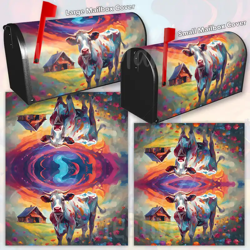 Revamp your Mailbox and your neighborhood with this brilliant Colorful Farmhouse Cow curbside / rural / farm magnetic or self adhesive vinyl Mailbox Cover. Our magnetic covers feature a complete magnetic surface throughout the entire design, unlike lower-quality options that only incorporate two magnet strips combined with a piece of canvas. This ensures better functionality and a more reliable, stronger hold against the wind, also these covers have an additional UV protection, so your covers will not fade for many years. We offer self-adhesive and magnetic covers with both standard opaque vinyl or reflective vinyl options. The reflective mailbox covers function just like license plates and road signs, ensuring excellent visibility during nighttime. No matter the size of your mailbox, we make covers for all small, large and jumbo boxes to suit your needs perfectly!