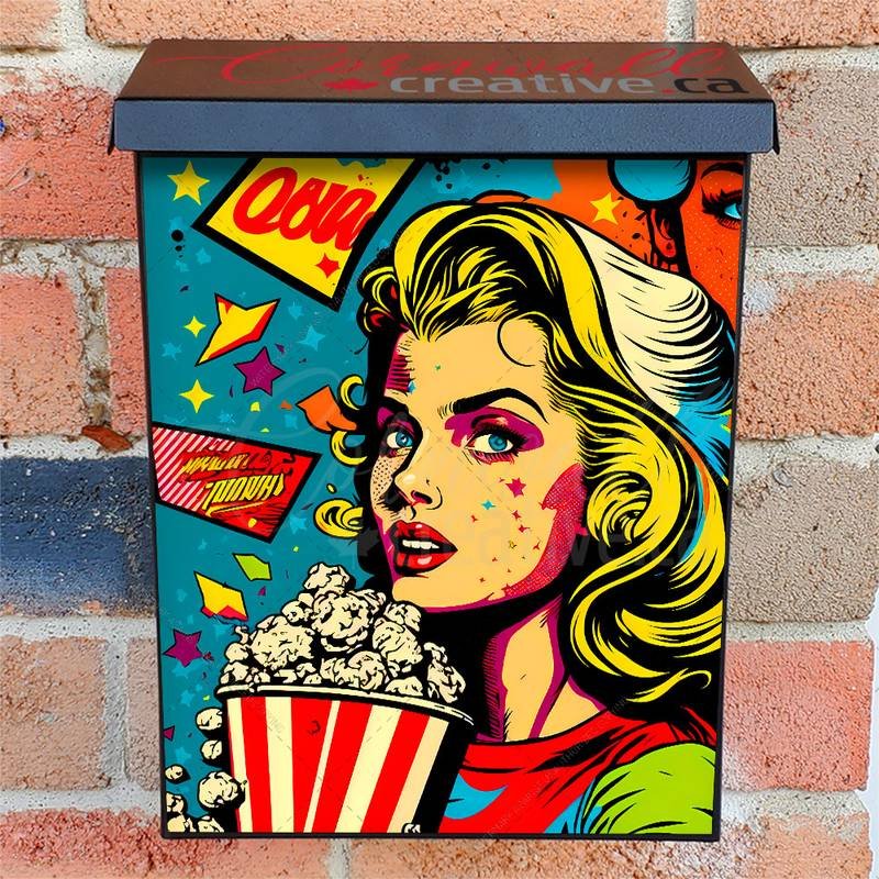 Adorn your Mailbox and your neighborhood with this brilliant Colorful Pop Art Girl #2 Colonial magnetic or self adhesive vinyl Mailbox Cover. Our magnetic covers feature a complete magnetic surface throughout the entire design, unlike lower-quality options that only incorporate two magnet strips combined with a piece of canvas. This ensures better functionality and a more reliable, stronger hold against the wind, also these covers have an additional UV protection, so your covers will not fade for many years. We offer self-adhesive and magnetic covers with both standard opaque vinyl or reflective vinyl options. The reflective mailbox covers function just like license plates and road signs, ensuring excellent visibility during nighttime. No matter the size of your mailbox, we make covers for all box sizes to suit your needs perfectly!