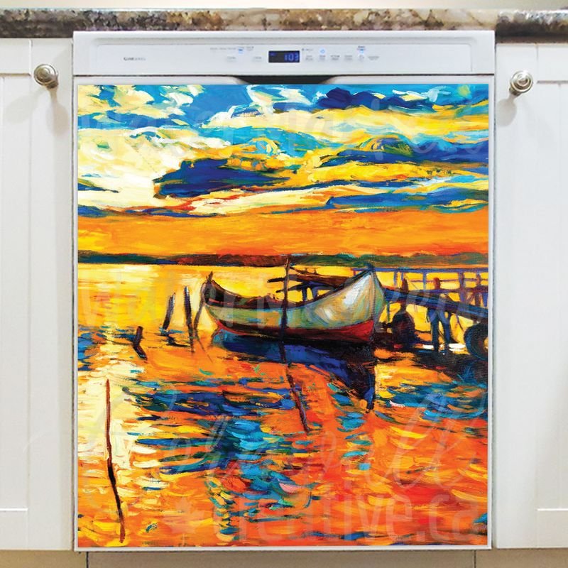 Beautify your kitchen effortlessly with this stunning Colorful Sunset with a Fishing Boat Magnetic Dishwasher Door Cover! Keep in mind that while this cover works with most dishwashers, some stainless steel and plastic doors might not hold magnets. There are two types of stainless steel: one that attracts magnets well and another that does not, and plastic doors will definitely not work with magnets. So, it is a good idea to test the surface with a magnet before making a purchase. If your dishwasher door is not compatible, consider opting for the Removable Dishwasher Door Sticker instead. Your gilded kitchen will be ready for the season in no time! Keep in mind that this magnetic cover is versatile and can be used on a variety of appliances, including fridges, freezers, washers, dryers, and more!