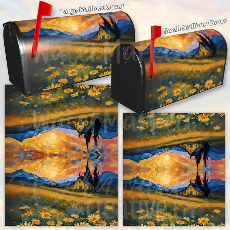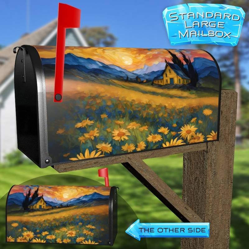 Revamp your Mailbox and your neighborhood with this brilliant Cottage in the Valley curbside / rural / farm magnetic or self adhesive vinyl Mailbox Cover. Our magnetic covers feature a complete magnetic surface throughout the entire design, unlike lower-quality options that only incorporate two magnet strips combined with a piece of canvas. This ensures better functionality and a more reliable, stronger hold against the wind, also these covers have an additional UV protection, so your covers will not fade for many years. We offer self-adhesive and magnetic covers with both standard opaque vinyl or reflective vinyl options. The reflective mailbox covers function just like license plates and road signs, ensuring excellent visibility during nighttime. No matter the size of your mailbox, we make covers for all small, large and jumbo boxes to suit your needs perfectly!
