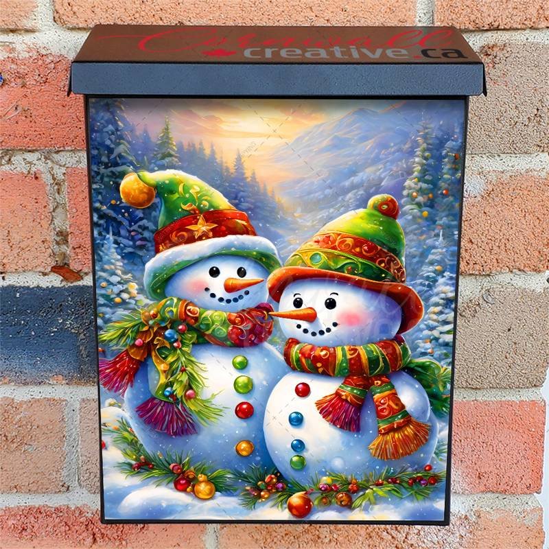 Revamp your Mailbox and your neighborhood with this brilliant Country Snowman Couple Colonial magnetic or self adhesive vinyl Mailbox Cover. Our magnetic covers feature a complete magnetic surface throughout the entire design, unlike lower-quality options that only incorporate two magnet strips combined with a piece of canvas. This ensures better functionality and a more reliable, stronger hold against the wind, also these covers have an additional UV protection, so your covers will not fade for many years. We offer self-adhesive and magnetic covers with both standard opaque vinyl or reflective vinyl options. The reflective mailbox covers function just like license plates and road signs, ensuring excellent visibility during nighttime. No matter the size of your mailbox, we make covers for all box sizes to suit your needs perfectly!