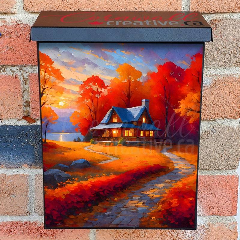 Enhance your Mailbox and your neighborhood with this brilliant Cozy Autumn Farmhouse Colonial magnetic or self adhesive vinyl Mailbox Cover. Our magnetic covers feature a complete magnetic surface throughout the entire design, unlike lower-quality options that only incorporate two magnet strips combined with a piece of canvas. This ensures better functionality and a more reliable, stronger hold against the wind, also these covers have an additional UV protection, so your covers will not fade for many years. We offer self-adhesive and magnetic covers with both standard opaque vinyl or reflective vinyl options. The reflective mailbox covers function just like license plates and road signs, ensuring excellent visibility during nighttime. No matter the size of your mailbox, we make covers for all box sizes to suit your needs perfectly!