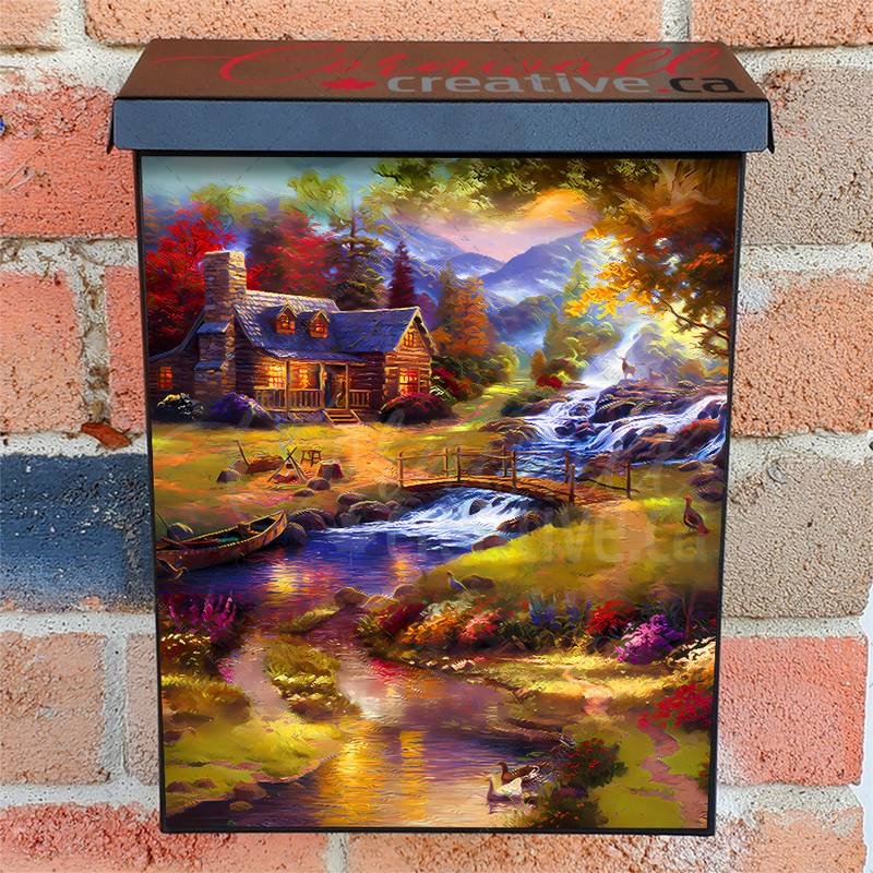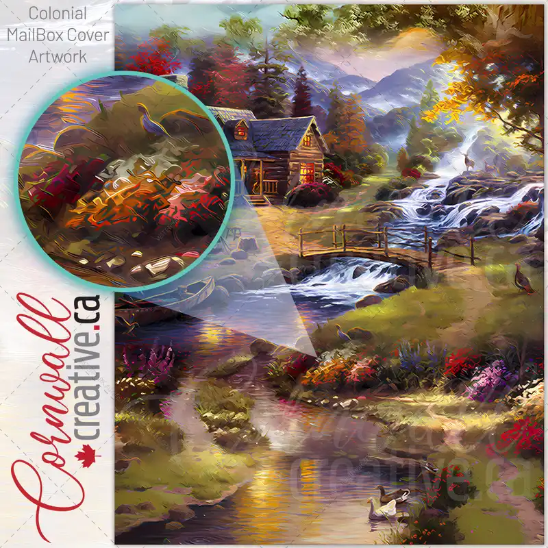 Dress-up your Mailbox and your neighborhood with this brilliant Cozy Cabin in the Woods Colonial magnetic or self adhesive vinyl Mailbox Cover. Our magnetic covers feature a complete magnetic surface throughout the entire design, unlike lower-quality options that only incorporate two magnet strips combined with a piece of canvas. This ensures better functionality and a more reliable, stronger hold against the wind, also these covers have an additional UV protection, so your covers will not fade for many years. We offer self-adhesive and magnetic covers with both standard opaque vinyl or reflective vinyl options. The reflective mailbox covers function just like license plates and road signs, ensuring excellent visibility during nighttime. No matter the size of your mailbox, we make covers for all box sizes to suit your needs perfectly!