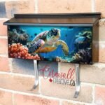 Applying your Cruising Turtle Amongst The Underwater Coral wall-mounted townhouse / ranch mailbox cover it is pretty easy to improve your mailbox to a special and unique item. These covers require a flat surface, so they work with townhouse / ranch mailboxes that do not have any embossed / debossed decoration or signs. Magnetic mailbox covers work with steel boxes only, for aluminum and plastic boxes we offer the self-adhesive vinyl covers. Also, you can create your custom townhouse / ranch mailbox cover using you own pictures, adding your name, street number, etc. Our magnetic covers feature a complete magnetic surface throughout the entire design, unlike lower-quality options that only incorporate two magnet strips combined with a piece of canvas. This ensures better functionality and a more reliable, stronger hold against the wind, also these covers have an additional UV protection, so your covers will not fade for many years. The reflective mailbox covers function just like license plates and road signs, ensuring excellent visibility during nighttime.