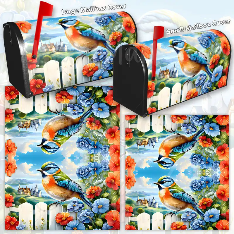 Gussy up your Mailbox and your neighborhood with this brilliant Cute Bird on the Fence curbside / rural / farm magnetic or self adhesive vinyl Mailbox Cover. Our magnetic covers feature a complete magnetic surface throughout the entire design, unlike lower-quality options that only incorporate two magnet strips combined with a piece of canvas. This ensures better functionality and a more reliable, stronger hold against the wind, also these covers have an additional UV protection, so your covers will not fade for many years. We offer self-adhesive and magnetic covers with both standard opaque vinyl or reflective vinyl options. The reflective mailbox covers function just like license plates and road signs, ensuring excellent visibility during nighttime. No matter the size of your mailbox, we make covers for all small, large and jumbo boxes to suit your needs perfectly!