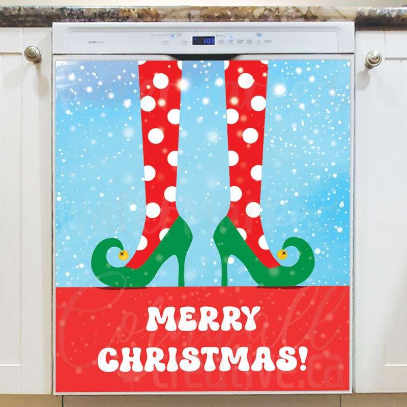 Cute Christmas Elf Legs 2 Magnetic Dishwasher Door Cover