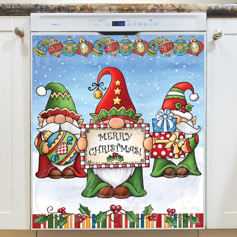 Enhance your kitchen effortlessly with this stunning Cute Christmas Gnomes Magnetic Dishwasher Door Cover! Keep in mind that while this cover works with most dishwashers, some stainless steel and plastic doors might not hold magnets. There are two types of stainless steel: one that attracts magnets well and another that does not, and plastic doors will definitely not work with magnets. So, it is a good idea to test the surface with a magnet before making a purchase. If your dishwasher door is not compatible, consider opting for the Removable Dishwasher Door Sticker instead. Your glamorized kitchen will be ready for the season in no time! Keep in mind that this magnetic cover is versatile and can be used on a variety of appliances, including fridges, freezers, washers, dryers, and more!