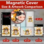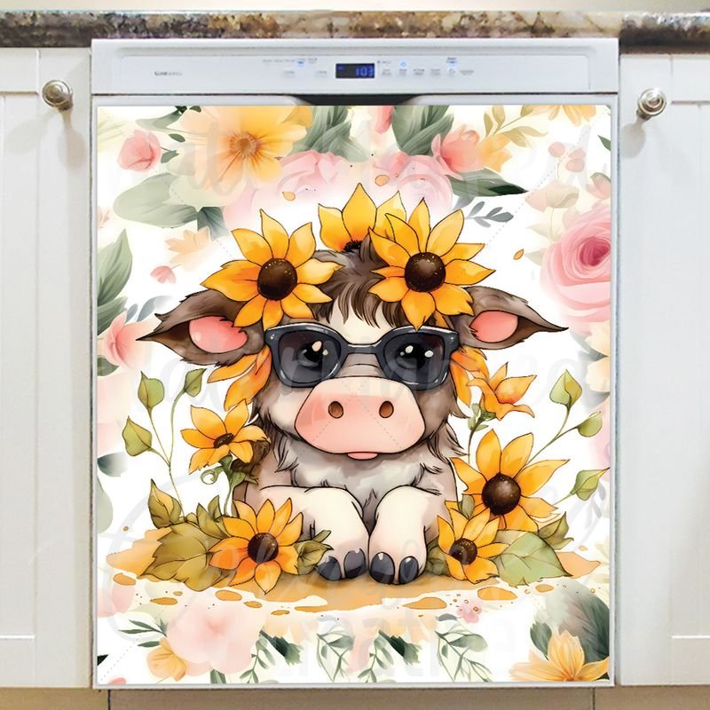 Decorate your kitchen effortlessly with this stunning Cute Cow and Sunflowers Magnetic Dishwasher Door Cover! Keep in mind that while this cover works with most dishwashers, some stainless steel and plastic doors might not hold magnets. There are two types of stainless steel: one that attracts magnets well and another that does not, and plastic doors will definitely not work with magnets. So, it is a good idea to test the surface with a magnet before making a purchase. If your dishwasher door is not compatible, consider opting for the Removable Dishwasher Door Sticker instead. Your reformed kitchen will be ready for the season in no time! Keep in mind that this magnetic cover is versatile and can be used on a variety of appliances, including fridges, freezers, washers, dryers, and more!