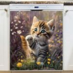 Develop your kitchen effortlessly with this stunning Cute Kitten with Dandelions Magnetic Dishwasher Door Cover! Keep in mind that while this cover works with most dishwashers, some stainless steel and plastic doors might not hold magnets. There are two types of stainless steel: one that attracts magnets well and another that does not, and plastic doors will definitely not work with magnets. So, it is a good idea to test the surface with a magnet before making a purchase. If your dishwasher door is not compatible, consider opting for the Removable Dishwasher Door Sticker instead. Your spruced up kitchen will be ready for the season in no time! Keep in mind that this magnetic cover is versatile and can be used on a variety of appliances, including fridges, freezers, washers, dryers, and more!