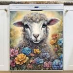 Cute Lamb in the Garden Magnetic Dishwasher Door Cover