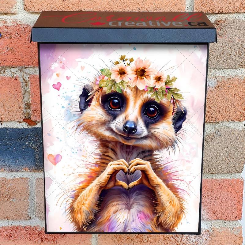 Gussy up your Mailbox and your neighborhood with this brilliant Cute Meerkat with Flowers Colonial magnetic or self adhesive vinyl Mailbox Cover. Our magnetic covers feature a complete magnetic surface throughout the entire design, unlike lower-quality options that only incorporate two magnet strips combined with a piece of canvas. This ensures better functionality and a more reliable, stronger hold against the wind, also these covers have an additional UV protection, so your covers will not fade for many years. We offer self-adhesive and magnetic covers with both standard opaque vinyl or reflective vinyl options. The reflective mailbox covers function just like license plates and road signs, ensuring excellent visibility during nighttime. No matter the size of your mailbox, we make covers for all box sizes to suit your needs perfectly!