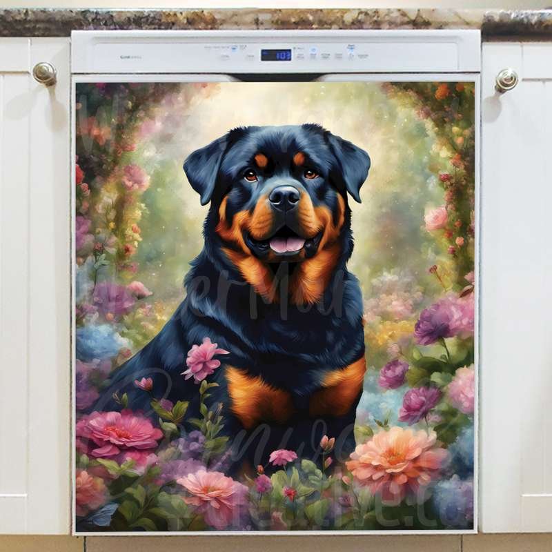 Glamorize your kitchen effortlessly with this stunning Cute Rottweiler and Flowers Magnetic Dishwasher Door Cover! Keep in mind that while this cover works with most dishwashers, some stainless steel and plastic doors might not hold magnets. There are two types of stainless steel: one that attracts magnets well and another that does not, and plastic doors will definitely not work with magnets. So, it is a good idea to test the surface with a magnet before making a purchase. If your dishwasher door is not compatible, consider opting for the Removable Dishwasher Door Sticker instead. Your developed kitchen will be ready for the season in no time! Keep in mind that this magnetic cover is versatile and can be used on a variety of appliances, including fridges, freezers, washers, dryers, and more!