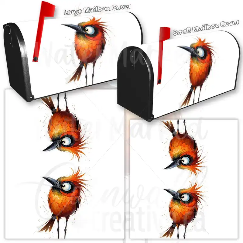 Improve your Mailbox and your neighborhood with this brilliant Cute, Silly Cardinal curbside / rural / farm magnetic or self adhesive vinyl Mailbox Cover. Our magnetic covers feature a complete magnetic surface throughout the entire design, unlike lower-quality options that only incorporate two magnet strips combined with a piece of canvas. This ensures better functionality and a more reliable, stronger hold against the wind, also these covers have an additional UV protection, so your covers will not fade for many years. We offer self-adhesive and magnetic covers with both standard opaque vinyl or reflective vinyl options. The reflective mailbox covers function just like license plates and road signs, ensuring excellent visibility during nighttime. No matter the size of your mailbox, we make covers for all small, large and jumbo boxes to suit your needs perfectly!